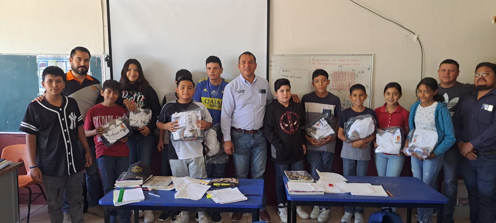 Entregan uniformes escolares a primarias y telesecundaria de Corraleño y San Rafael