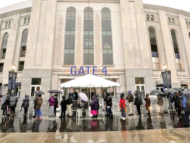 Desafiando el frío y la lluvia, centenares de personas comenzaron a vacunarse contra covid en el icónico estadio de los Yankees en el Bronx, el distrito más golpeado por el virus en Nueva York y uno de los más pobres de Estados Unidos, donde la mayoría de la población es negra y latina.