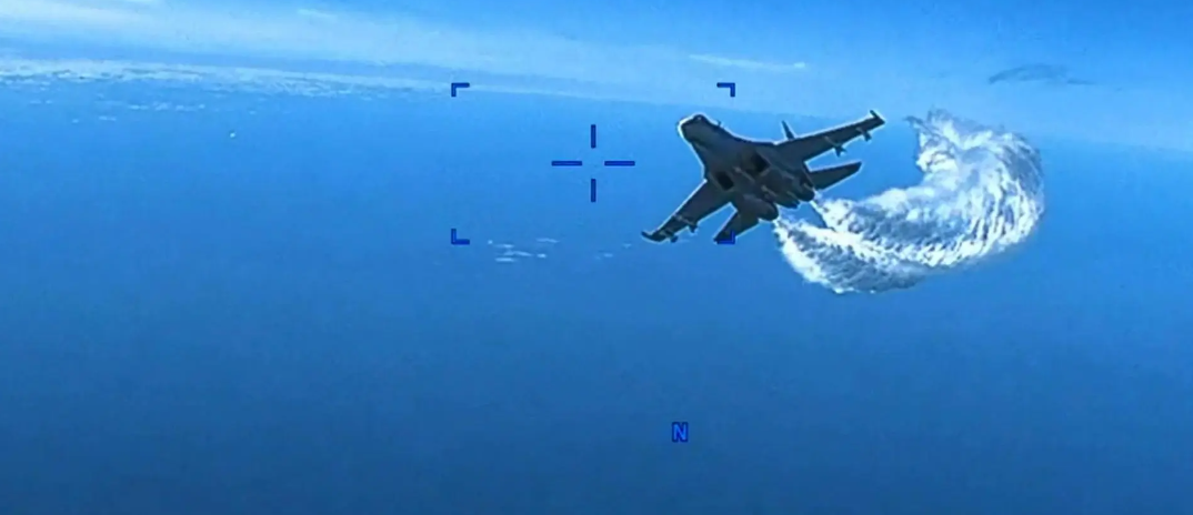 El Comando Europeo del ejército de EE.UU. publicó imágenes desclasificadas del incidente protagonizado entre un caza ruso “Su-27” y un dron estadounidense sobre aguas del Mar Negro y que acabó provocando que la nave no tripulada se estrellara.