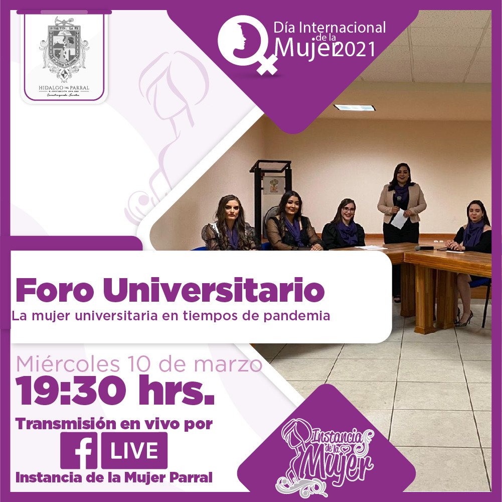 La cita es a las 19:30 horas de este miércoles 10 de marzo vía Facebook Live de Instancia de la Mujer Parral, para seguridad de los propios participantes y público en general.