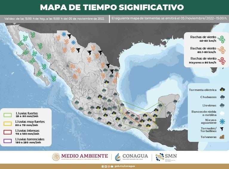 Las lluvias serán aisladas, de 0.1 a 2 milímetros (mm), en partes de la región sureste como Guadalupe y Calvo, Matamoros, López, Coronado y Jiménez. Podrían estar acompañadas de caída de granizo y actividad eléctrica.