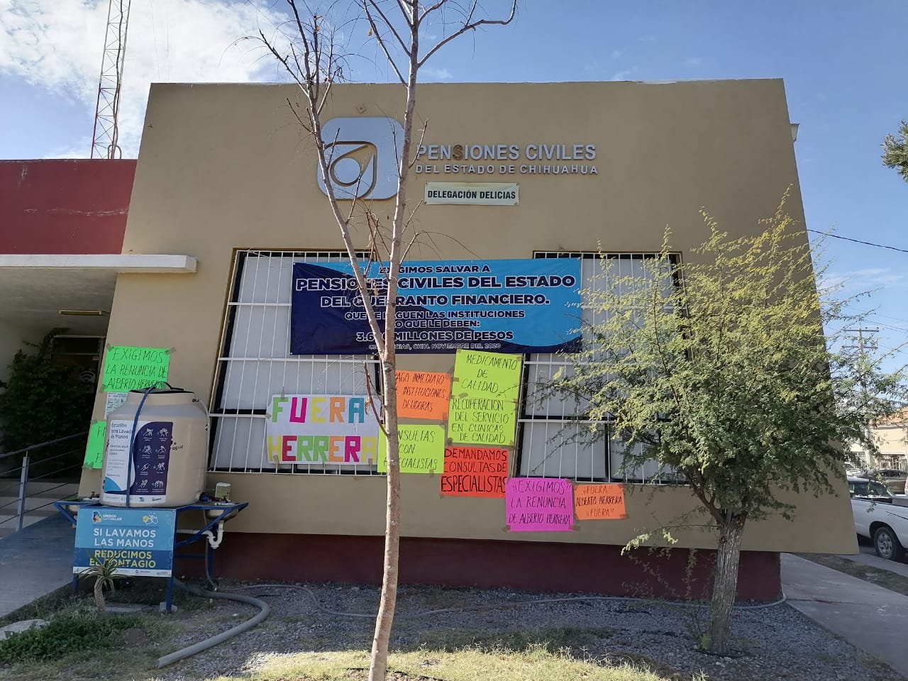 “Exigimos salvar a Pensiones Civiles del Estado del quebranto financiero. Que le paguen las instituciones que le deben: 3 millones 600 mil pesos,” se puede leer en una de las pancartas que se encuentra firmada con el lugar de Delicias, Chihuahua en el mes de noviembre del presente año.