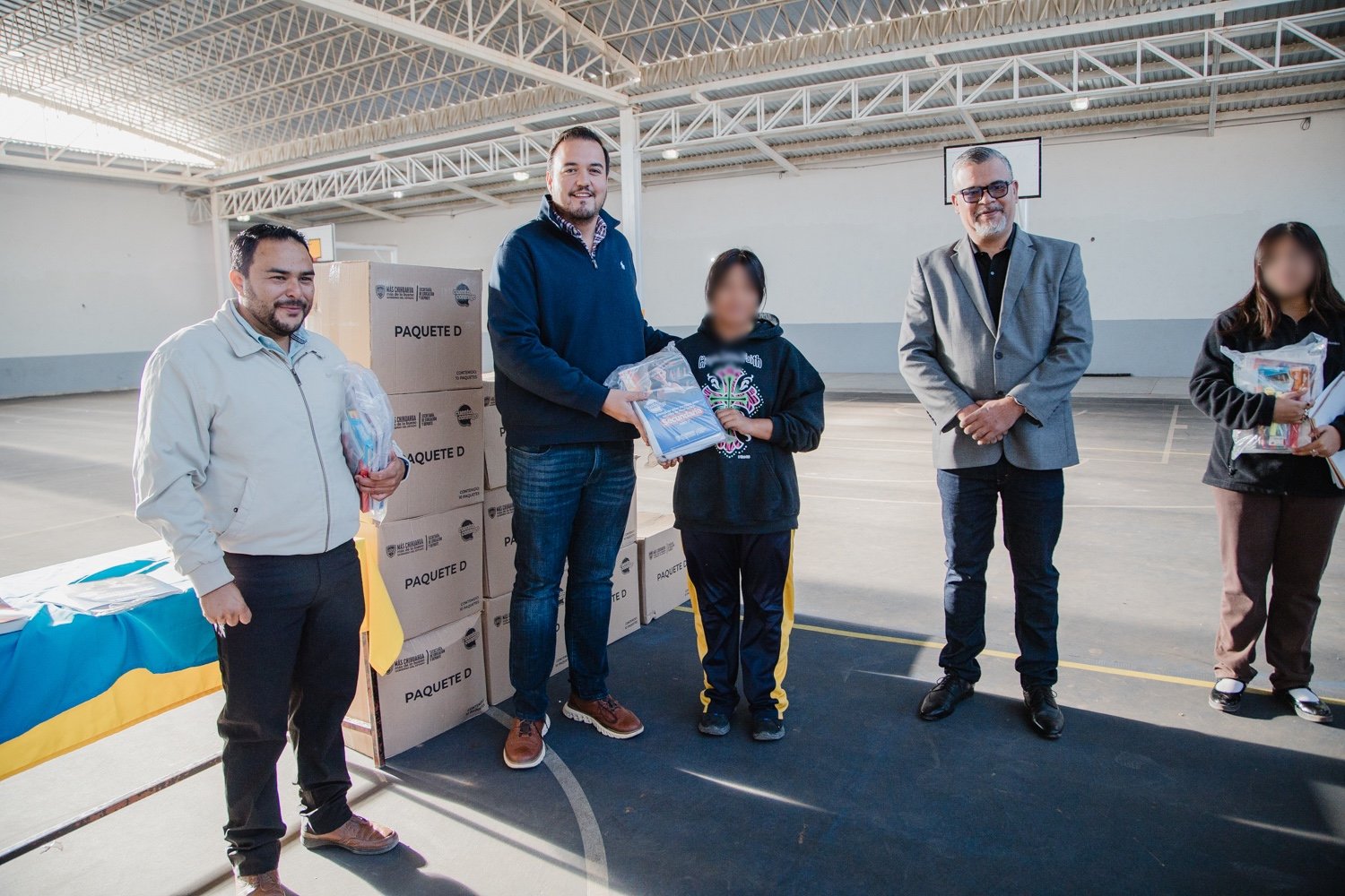 El Gobierno Municipal de Camargo realizó la entrega de útiles escolares a las y los estudiantes de la Escuela Secundaria Federal Benemérito de las Américas, como parte de las acciones para fortalecer el acceso a una educación digna y de calidad.