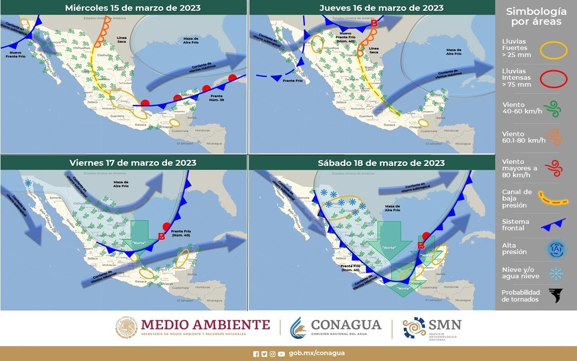 La Coordinación Estatal de Protección Civil (CEPC) dio a conocer que para las próximas 72 horas se prevé el ingreso del frente frío 40, el cual generará fuertes vientos, además de presencia de precipitaciones en distintas regiones del territorio estatal.