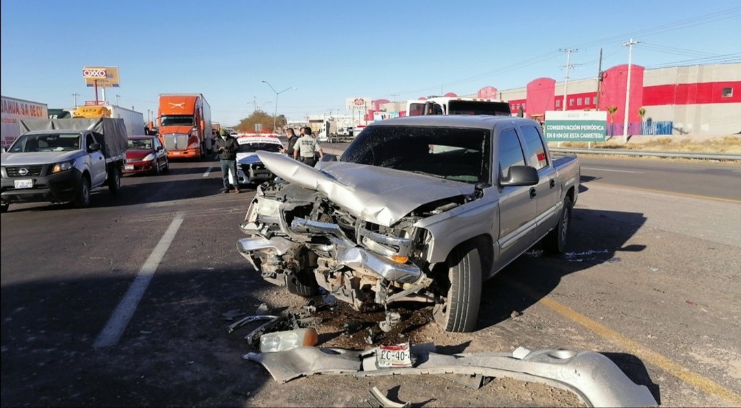 El conductor de la camioneta, un joven de aproximadamente 25 años de edad, manifestó que al transitar en sentido de norte a sur el tráiler se le atravesó y se impactaron en la parte frontal del vehículo.