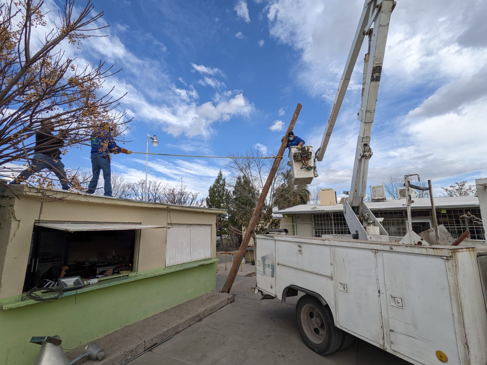 Debido a los fuertes vientos que se presentan en el estado, en la ciudad de Delicias se reportó que un poste cercano a la escuela Enrique Rubio resultó con daños.