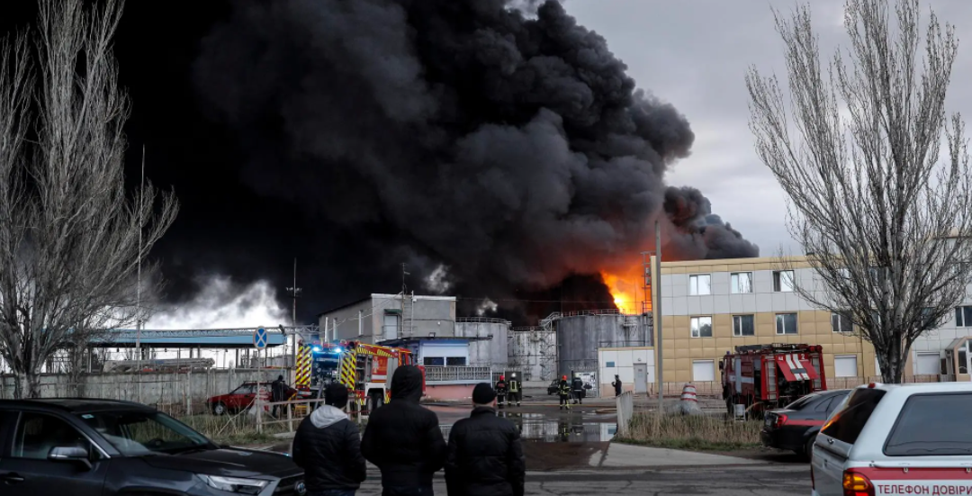 El ataque, afirma Rusia, se produjo “con misiles navales y terrestres de alta precisión” dirigidos a la refinería y a tres depósitos de combustible.