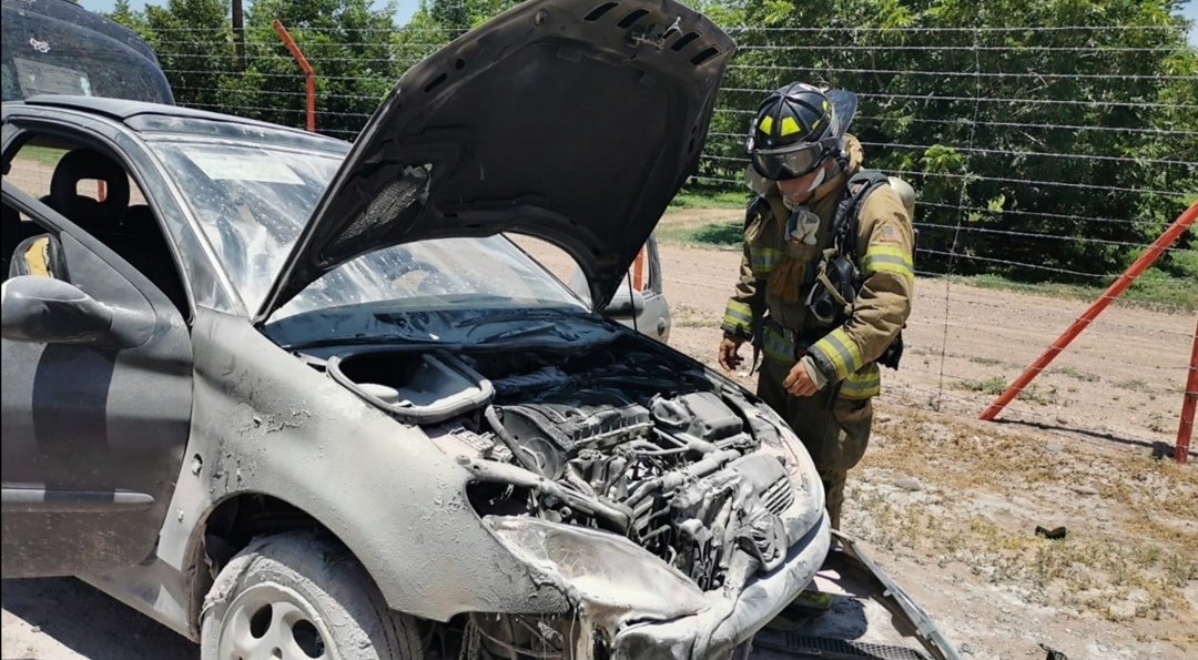 Una fuga de combustible provocó que un vehículo se incendiara en la carretera que conduce de la Colonia Hidalgo hacia el seccional de Las Varas en Saucillo.
