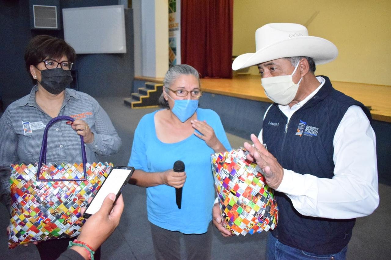 “Se necesita actitud para salir adelante, es muy fácil llegar ante el gobierno y decir necesito que me ayudes con despensa, pero hoy la señora Claudia, llegó a decir vengo a buscar una despensa, pero quiero darle algo a cambio, me mostró lo que hace con mucho ingenio, una bolsa ecológica que hace con material reciclado, son realmente artesanías”.