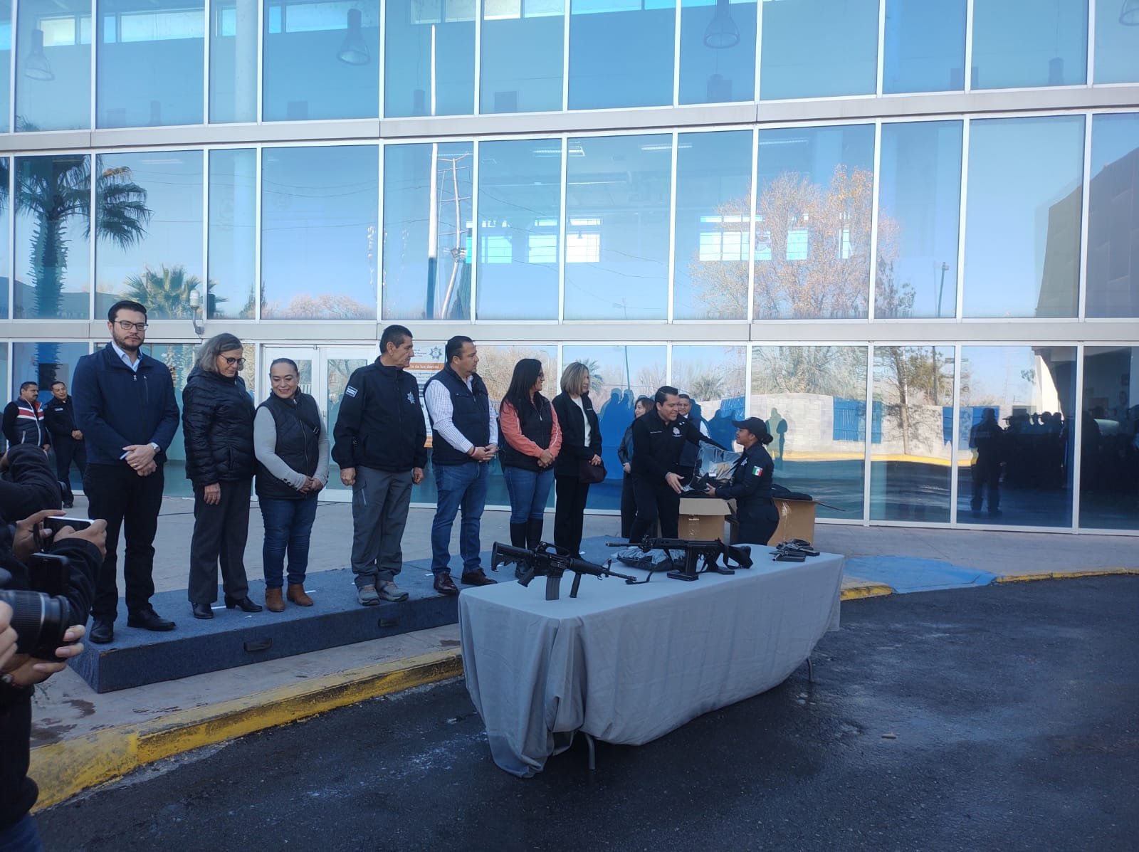 Gestión que realizó con el apoyo del Secretario de Seguridad Pública, Gilberto Loya y la Gobernadora del Estado, María Eugenia Campos.