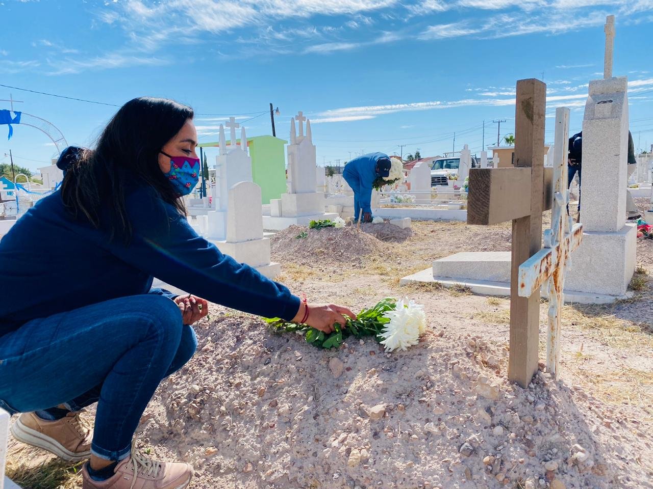 Durante la colocación de flores en el Panteón Municipal de Delicias, los productores de flor aprovecharon para agradecer al municipio de Delicias por solidarizase al ayudarlos a sacar su cosecha tras el anuncio en la región de que la mayoría de los panteones permanecen cerrados.