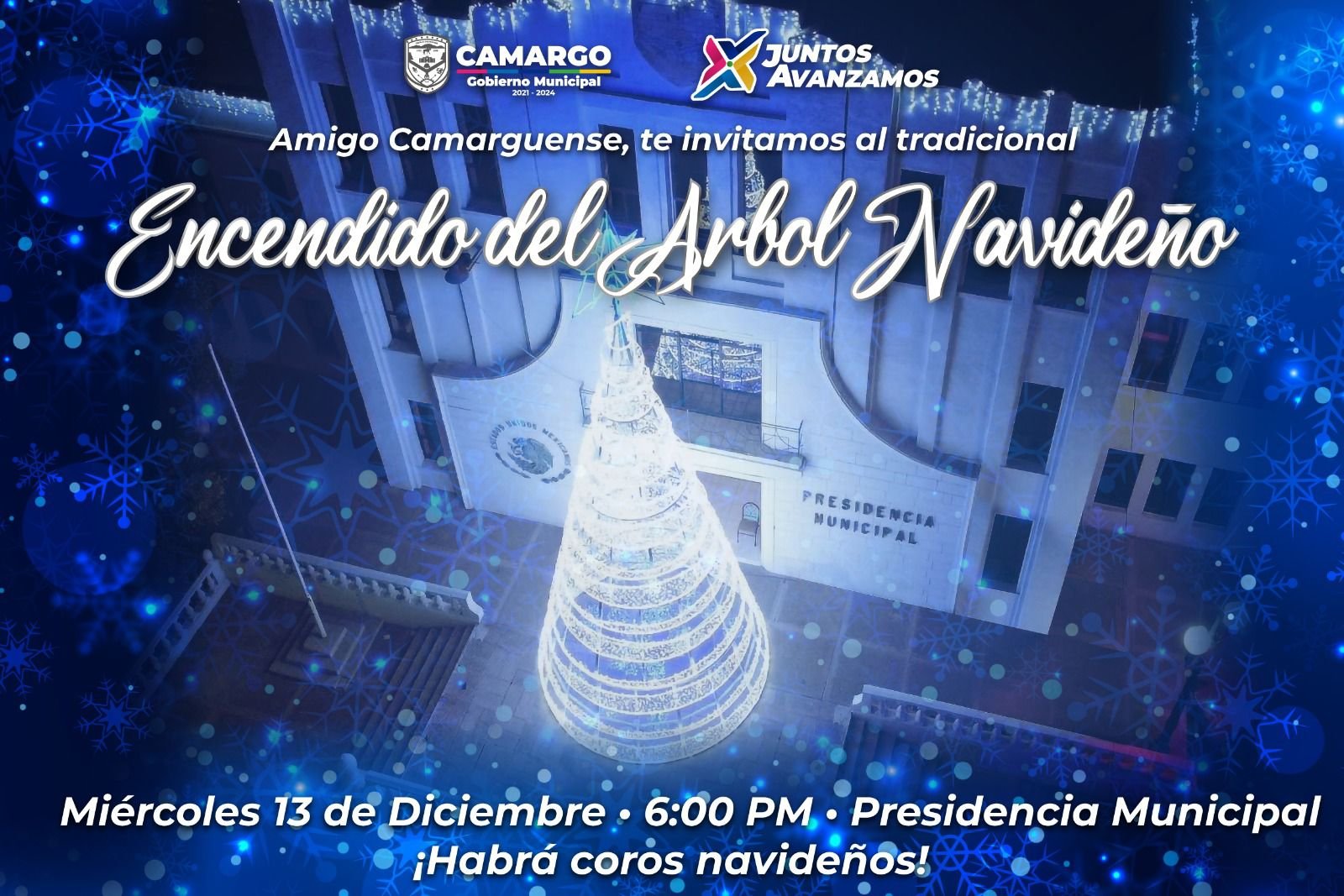 Este miércoles 13 de diciembre a partir de las 6 de la tarde se llevará acabo el encendido del árbol navideño frente a presidencia municipal.