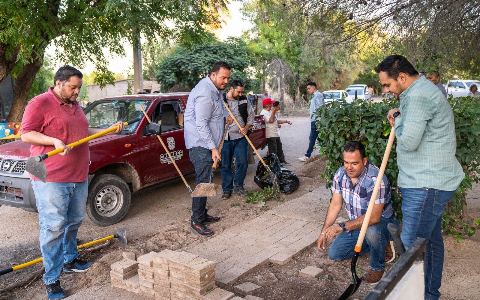El presidente Jorge Aldana, acompañado de todos los directores del Gobierno Municipal, algunas regidoras y de los vecinos de la comunidad estuvieron trabajando en la rehabilitación de la plaza principal.