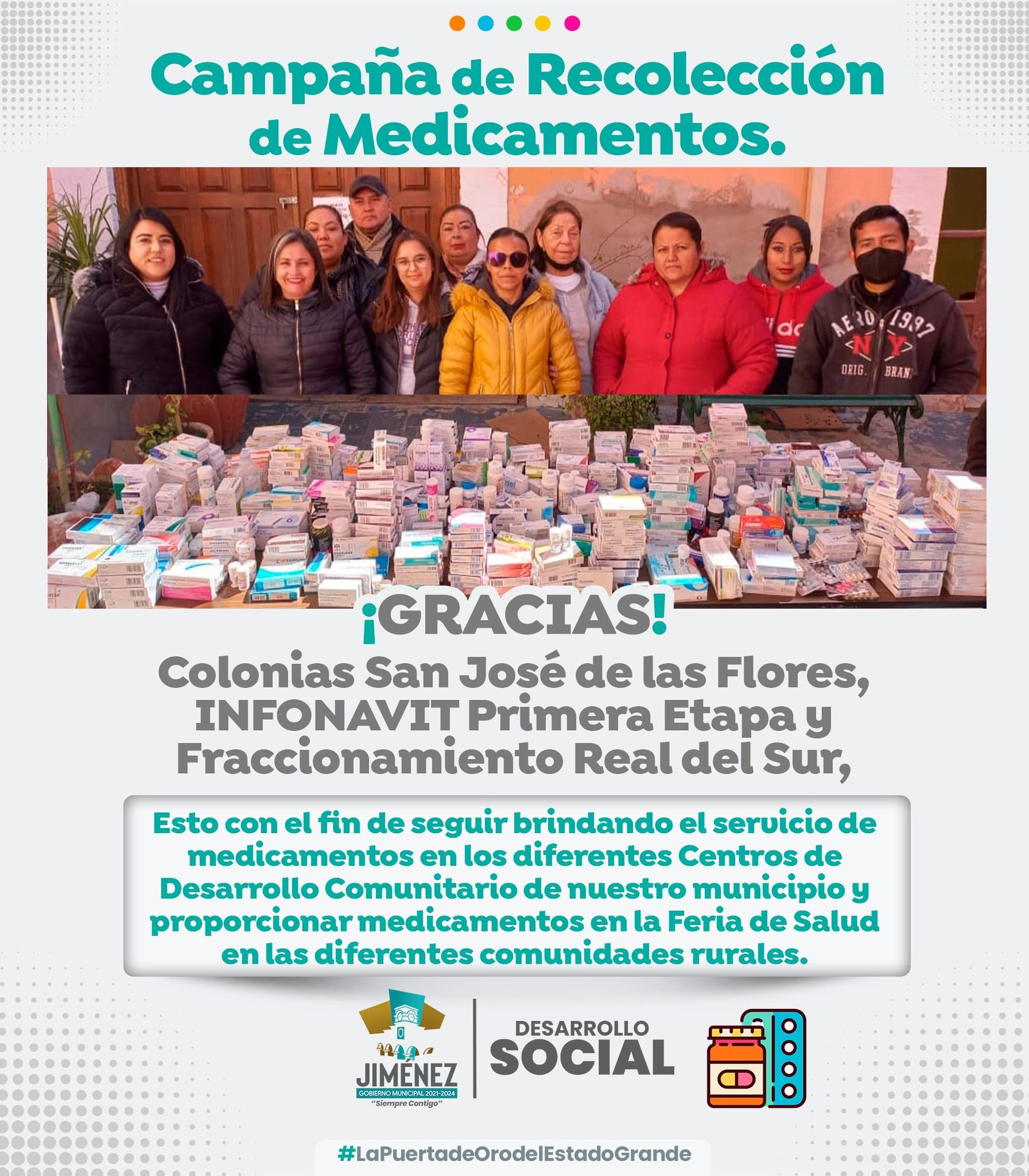 La campaña de recolección de medicamentos en las colonias San José de las Flores, Infonavit primera etapa y fraccionamiento Real del Sur fue todo un éxito.