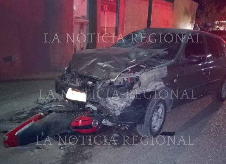 Un joven motociclista en estado grave sobrevivió a un fuerte choque frontal con un auto la noche de este lunes en el fraccionamiento Las Torres.