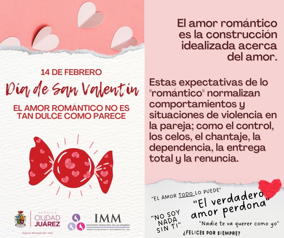 La violencia en las relaciones de pareja podría no ser percibida de manera inmediata debido a los mitos del amor romántico y es ahí cuando representa un problema. Esta falsa idea que tenemos del amor promueve la adaptación, la tolerancia, la confianza ciega y hasta la justificación de conductas y situaciones de maltrato o violencia, por lo que es importante que estas manifestaciones sean deconstruídas, dijo.