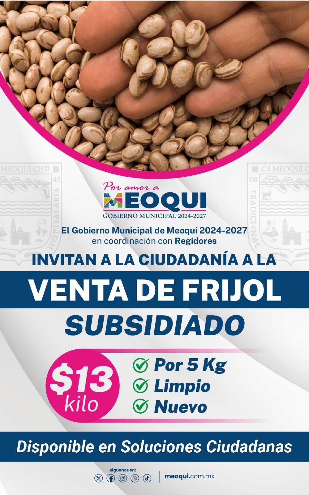Abre Gobierno Municipal de Meoqui programa de frijol subsidiado a 13 pesos por kilo