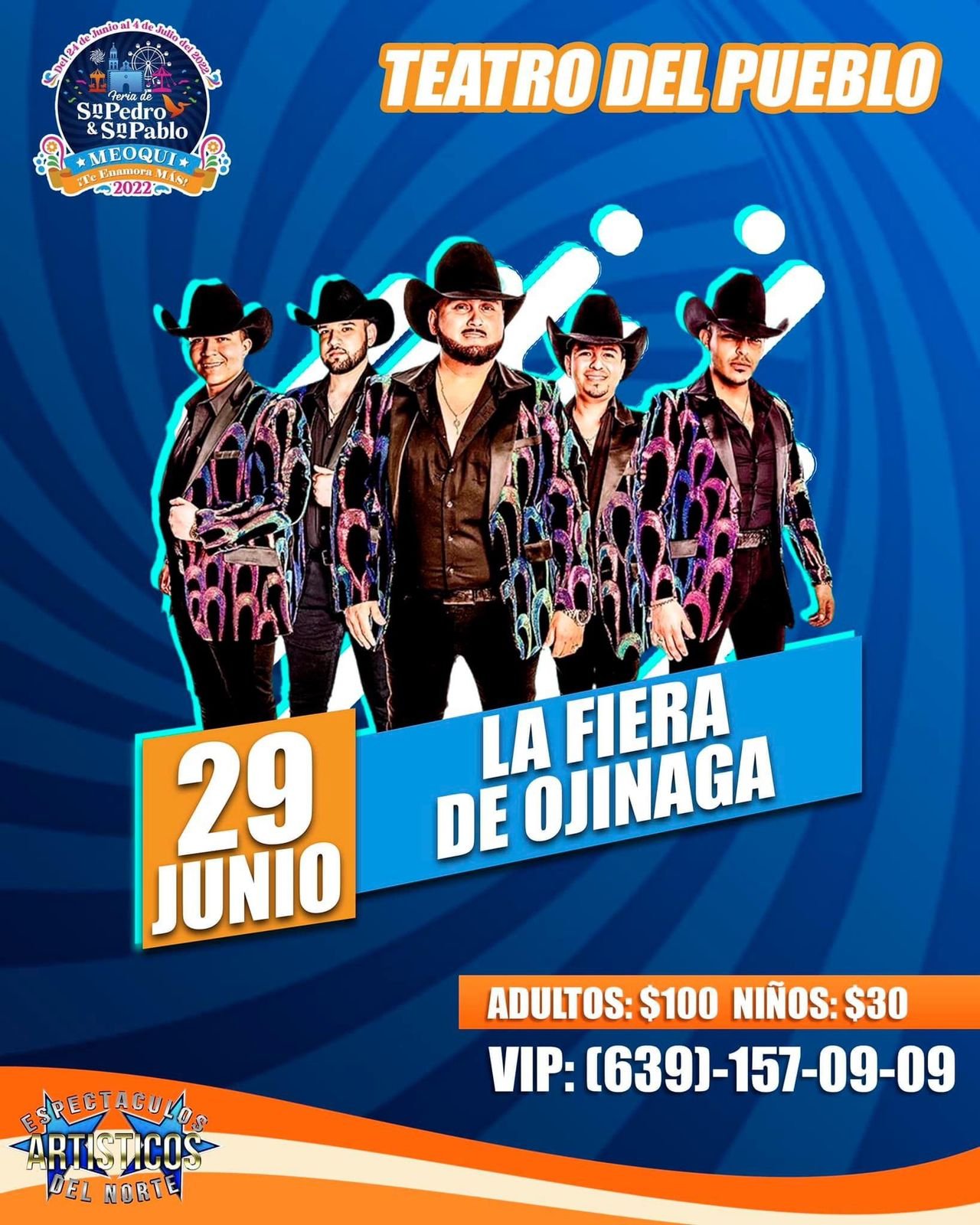 Este día, miércoles 29 de junio, se tendrá la gran presentación de La Fiera de Ojinaga en el Teatro del Pueblo de la Feria San Pedro y San Pablo de Meoqui 2022.