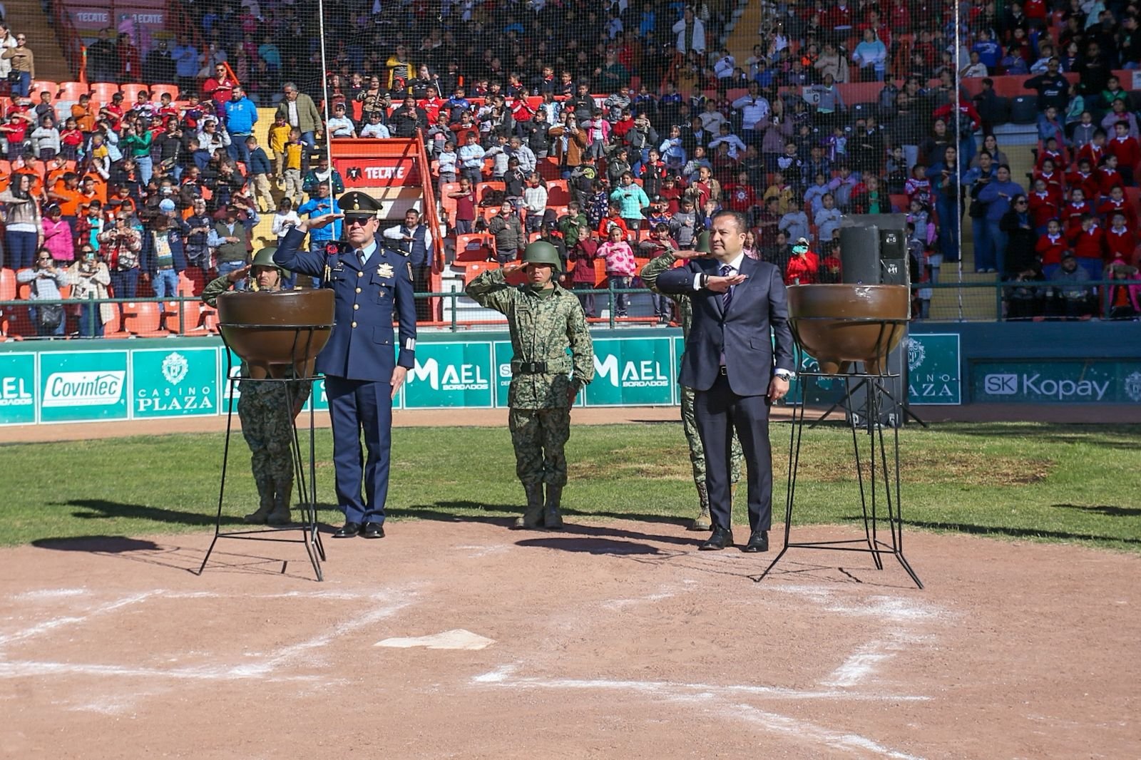 Encabeza Valenciano acto cívico por el Día de la Bandera ante 2,500 estudiantes en Delicias