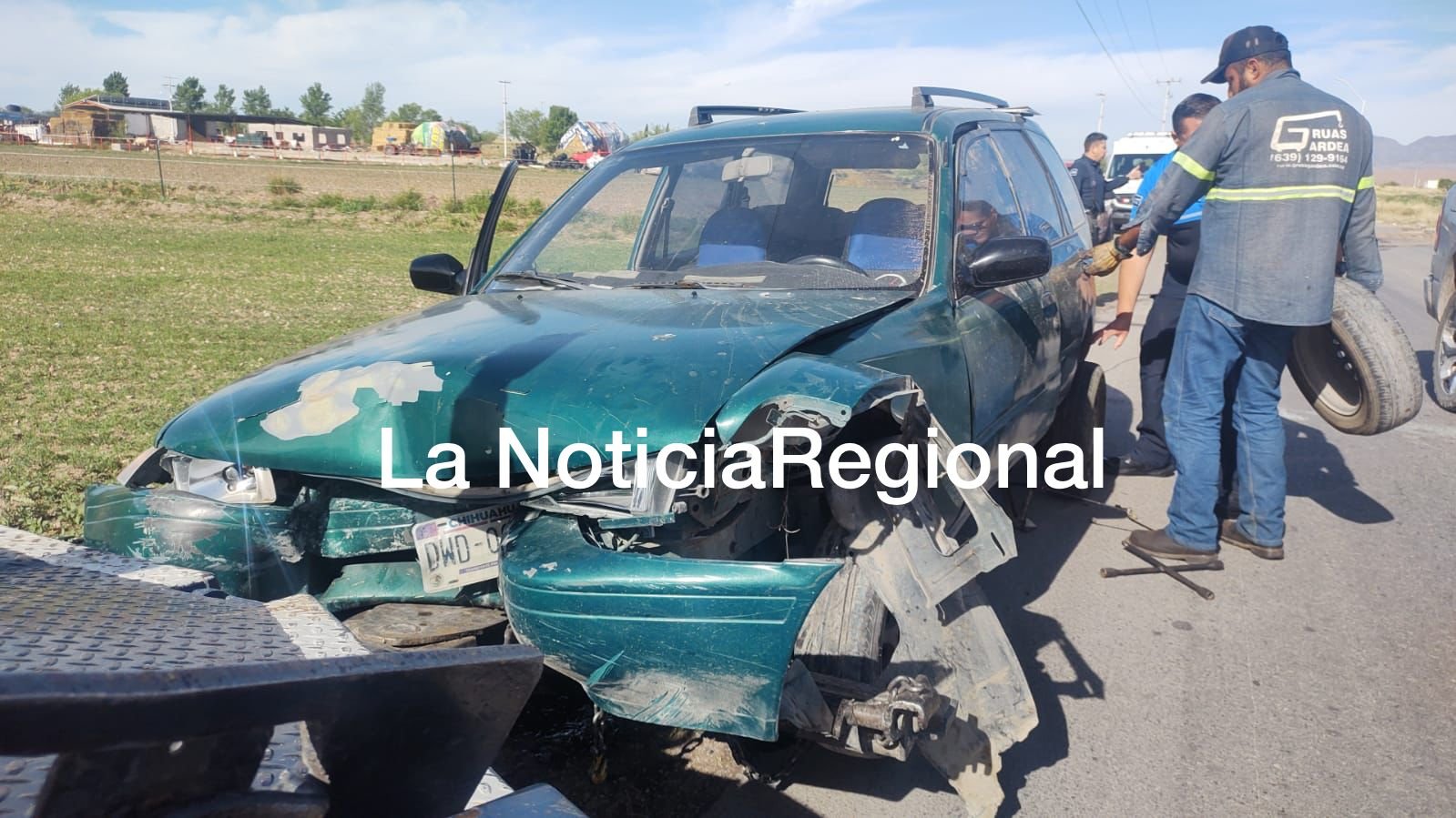 Lugar en dónde llegaron elementos de bomberos, vialidad y paramédicos de Cruz Roja, dónde se percataron de un vehículo Nissan de color verde tipo vagoneta, dónde al parecer el conductor huyo de manera pedestre del lugar.