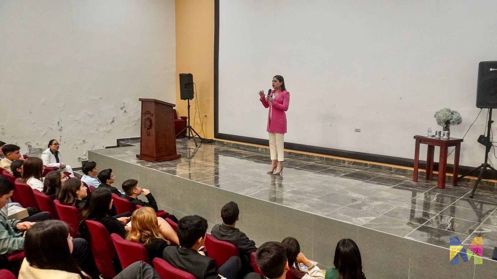 Imparte Miriam Soto conferencia a alumnos de la Secundaria Técnica 52 en Foro de Líderes