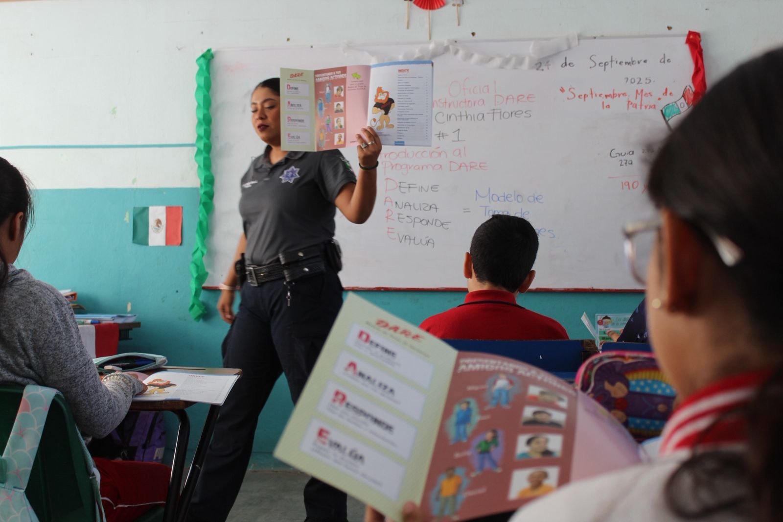El Gobierno Municipal de Delicias continúa con la implementación de la vigésimo quinta generación del programa DARE, esta vez en la primaria Miguel Lerdo de Tejada, ubicada en la colonia Hidalgo. La oficial Isabel Meléndez, instructora del programa, informó que estas actividades se realizan por instrucción del alcalde Jesús Valenciano García y bajo la dirección del policía primero Raymundo González, con el objetivo de fortalecer la prevención entre niñas, niños y adolescentes.