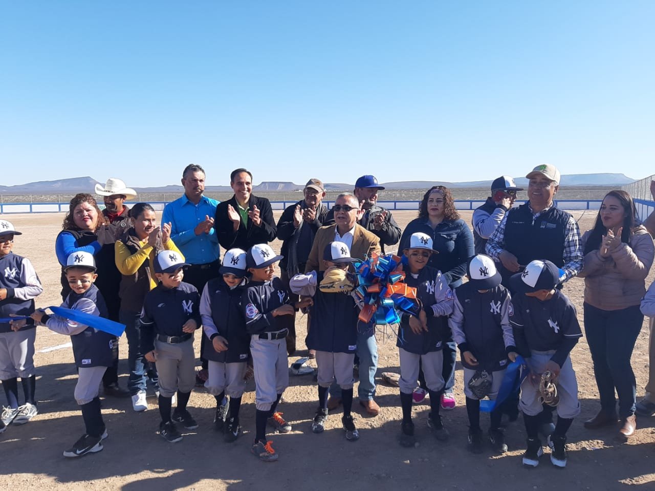 La Cruz.- Con una inversión superior al millón 700 mil pesos, esta mañana el alcalde Adolfo Trillo Herrera, hizo entrega del Parque de Beisbol Infantil, que fue inaugurado con la presencia del alcalde de Camargo Arturo Zubía Fernández.