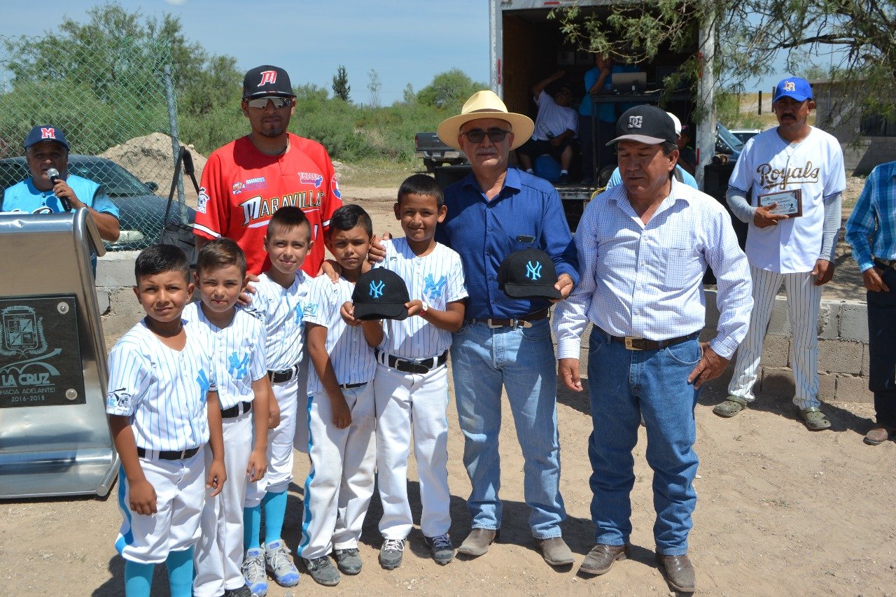 La Cruz.- El alcalde Fito Trillo, acompañado de representantes del Deporte y Regidores del Ayuntamiento, inauguró la temporada de beisbol infantil y regular de esta Liga, en la que se hace reconocimiento a cuatro personajes del Deporte en la localidad.