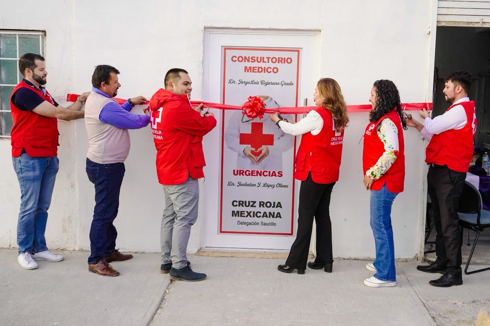 En un evento significativo para la comunidad, el presidente municipal de Saucillo, Fito Gardea, acompañado por Jorge Luis Bejarano Grado, responsable del consultorio; Jonathan Javier López, responsable de urgencias médicas; Javier López Urquidi, coordinador de Cruz Roja delegación Saucillo; Luis Carlos Aguilera, coordinador estatal general de cruz roja; Pedro Alonso López Ávalos, director de consulta externa de Cruz Rojas estatal; Silvia Torres Caballero, recaudadora de rentas; Saul Omar Gómez Madero, síndico municipal; Veronica Villanueva Hernández, presidenta honoraria de Cruz Roja delegación Saucillo y la maestra Lourdes Molina Flores, presidenta del consejo de Cruz Roja delegación Saucillo, llevaron a cabo el corte del listón inaugural del nuevo Consultorio Médico de Cruz Roja delegación Saucillo.