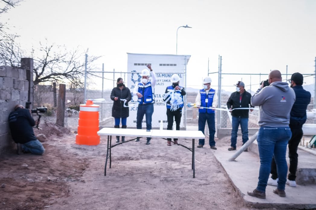 Durante una gran gira de trabajo, José Francisco Ramírez Licón acompañado por el director de la Junta Central de Agua y Saneamiento, Óscar Ibáñez y Marcial Márquez, presidente de la JMAS de Rosales inauguraron esta obra hecha por la gran coordinación.