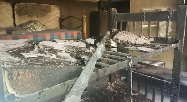 Ante esto, se encargaron de tomar nota de los daños ocurridos, el fuego no logró rebasar la puerta del cuarto, por lo que solamente hubo estragos en dicho lugar.