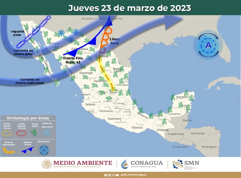 La Coordinación Estatal de Protección Civil (CEPC) mantiene el exhorto a la población ante la presencia de fuertes vientos durante la tarde del jueves 23 de marzo, debido al ingreso del frente frío 43 a la entidad; lo que a su vez puede generar condiciones de formación de tolvaneras y un ligero descenso en las temperaturas máximas durante la mañana del viernes 24.