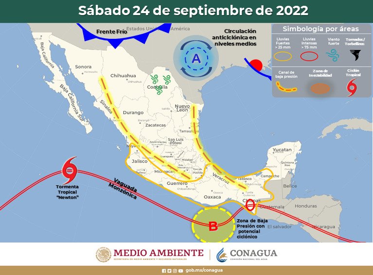 Mientras, para el sábado 24, la aproximación de un frente frío propiciará ligeras lluvias sobre los municipios colindantes con el estado de Sonora, así como la probabilidad de tormentas eléctricas, con temperaturas agradables a calurosas, que pueden superar los 30 grados en algunas zonas del estado.