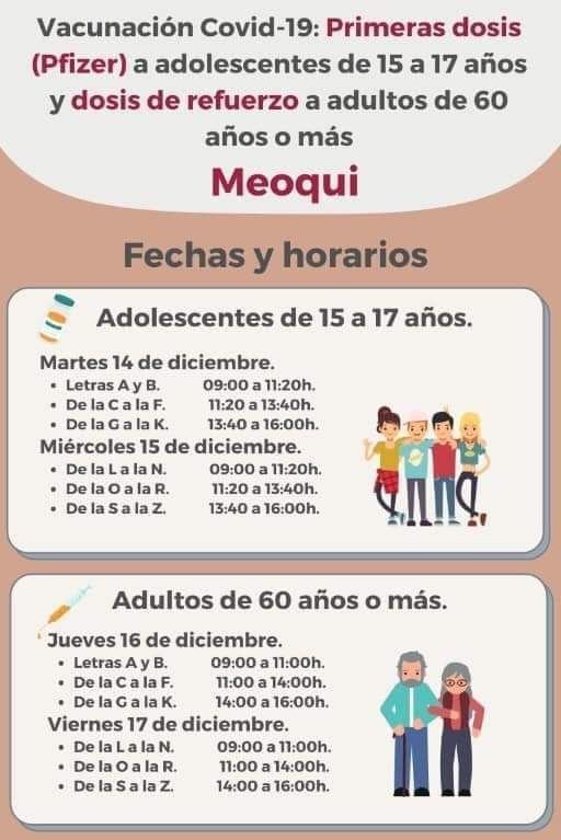 Los puntos de vacunación en Meoqui son el salón de maestros Cimap, y el gimnasio del Cobach en Lázaro Cárdenas.