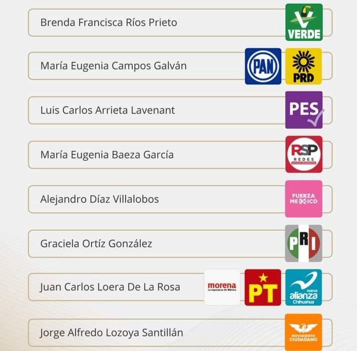 María Eugenia Campos Galván, por la coalición Nos Une Chihuahua, conformada por los partidos Acción Nacional y de la Revolución Democrática.