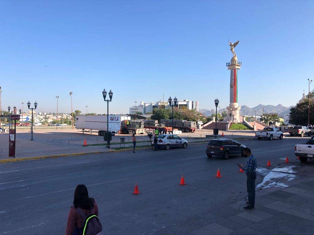Desde temprana hora de este lunes, comenzaron los preparativos para las fiestas patrias en la plaza del Ángel en la capital del estado.