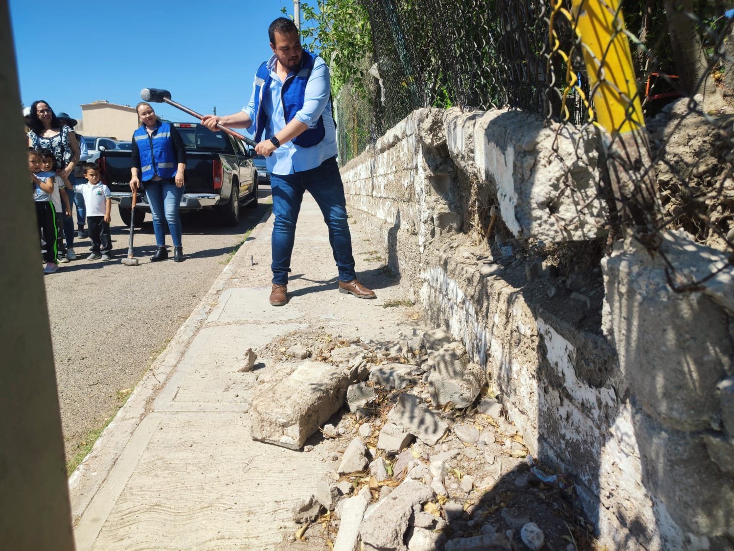 Esta mañana el alcalde Jorge Aldana y el departamento de Obras Públicas de Camargo dieron arranque a la rehabilitación de la barda perimetral del jardín de niños María Montessori de la colonia Lomas del Florido.
