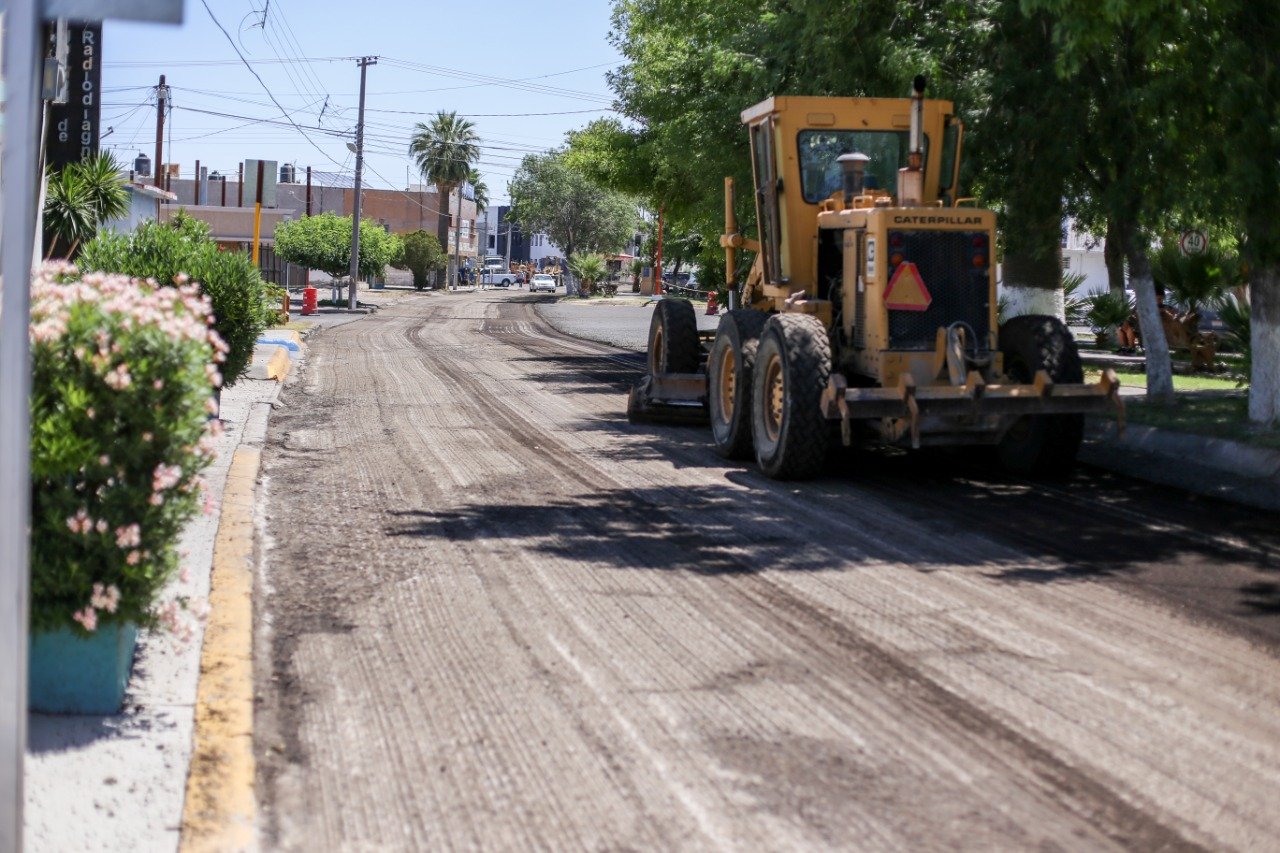 Delicias.- Con el objetivo de seguir rehabilitando las vialidades de Delicias, la dirección de Obras Públicas continúa con trabajos de aplicación de sobre carpeta ahora en un tramo de la avenida Agricultura.
