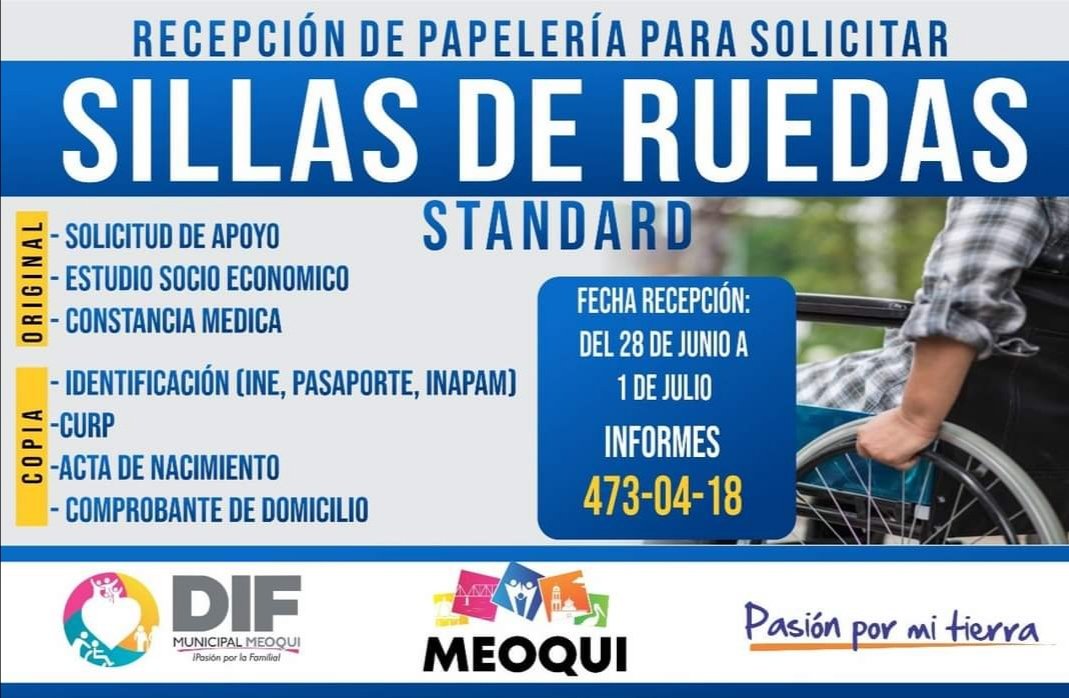 El DIF Municipal de Meoqui inició con la recepción de papelería para las personas que deseen solicitar sillas de ruedas.
