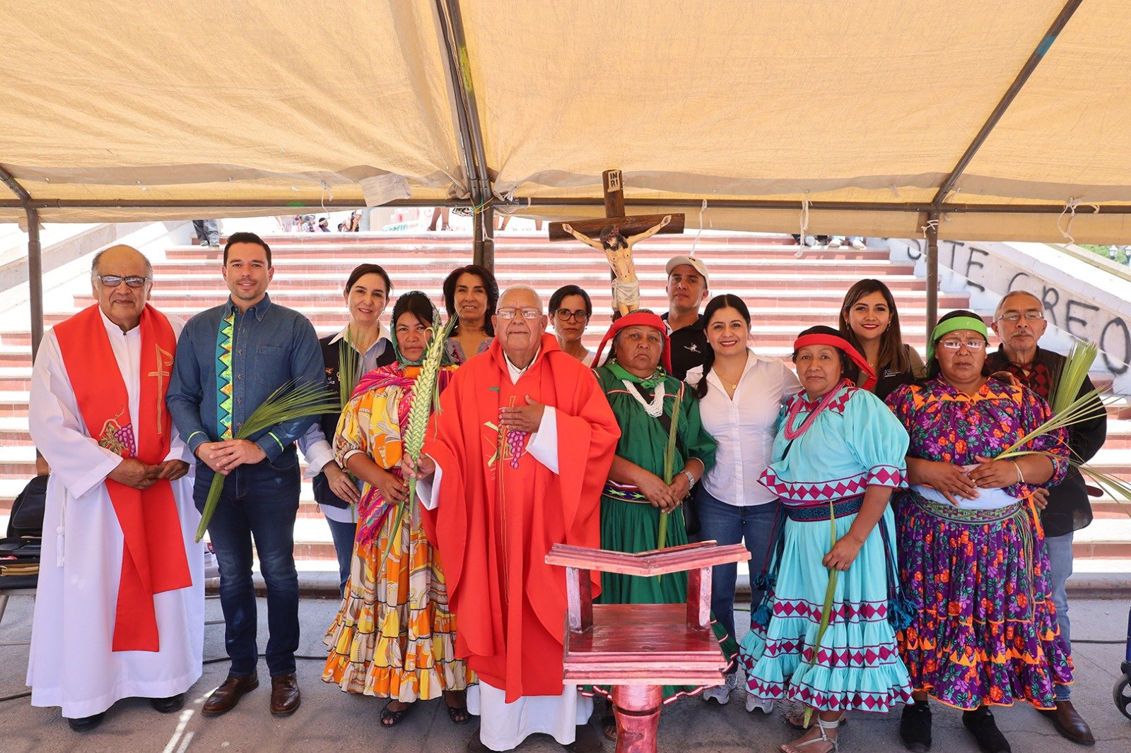 Tras proceder a la bendición de los ramos, el sacerdote José Manuel Granados Ávila, párroco del templo de San José de los Tarahumaras, ofició la misa en la que dio un mensaje de unidad, esperanza y respeto.