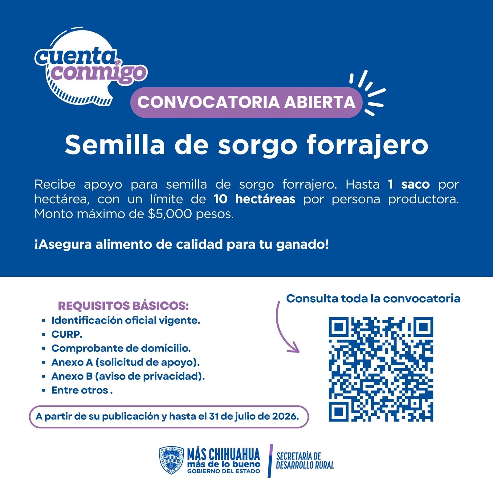La convocatoria completa, así como los anexos correspondientes a los requisitos, pueden consultarse y descargarse en el sitio oficial: https://www.chihuahua.gob.mx/sdr.