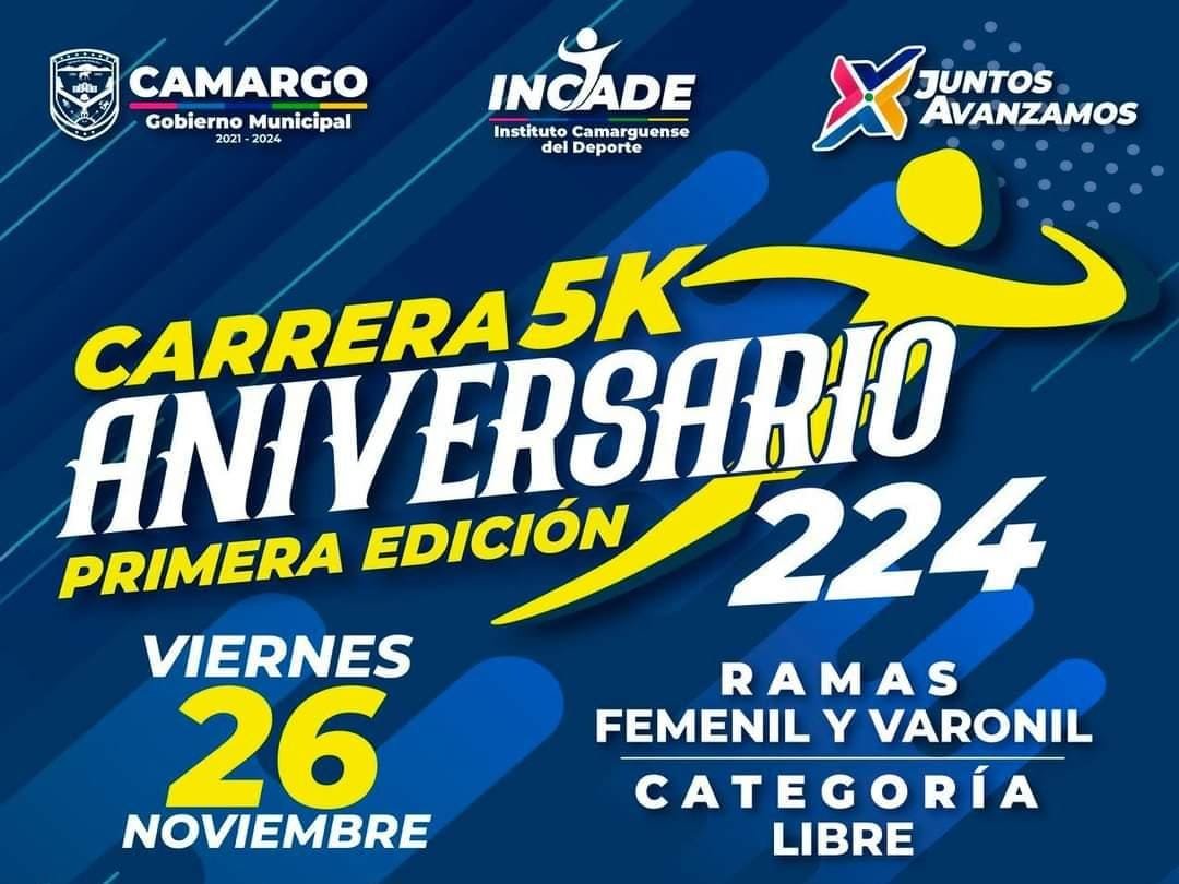 El Instituto Camarguense del Deporte, instalará está tarde un módulo de inscripción de la carrera Aniversario 5k por el 224 aniversario de Camargo en las instalaciones de la deportiva Luis Jaramillo en punto de las 5 de la tarde.