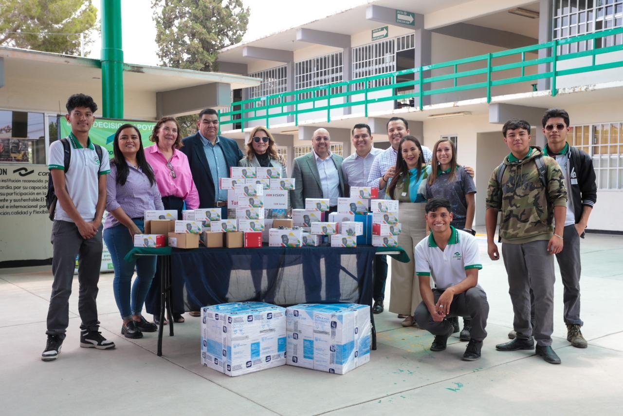 Con el objetivo de atender las necesidades de infraestructura de los planteles educativos de Delicias, el Presidente Municipal, Jesús Valenciano, hizo entrega de un donativo al CONALEP, a fin de equipar las instalaciones con cámaras de video vigilancia.