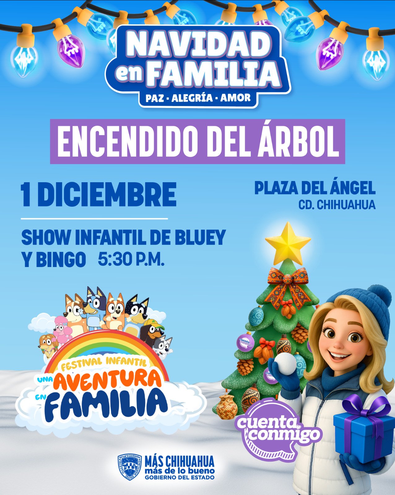 El Gobierno del Estado invita a las y los chihuahuenses, a disfrutar del tradicional encendido del Árbol de Navidad, que se llevará a cabo en la Plaza del Ángel este 1 de diciembre.