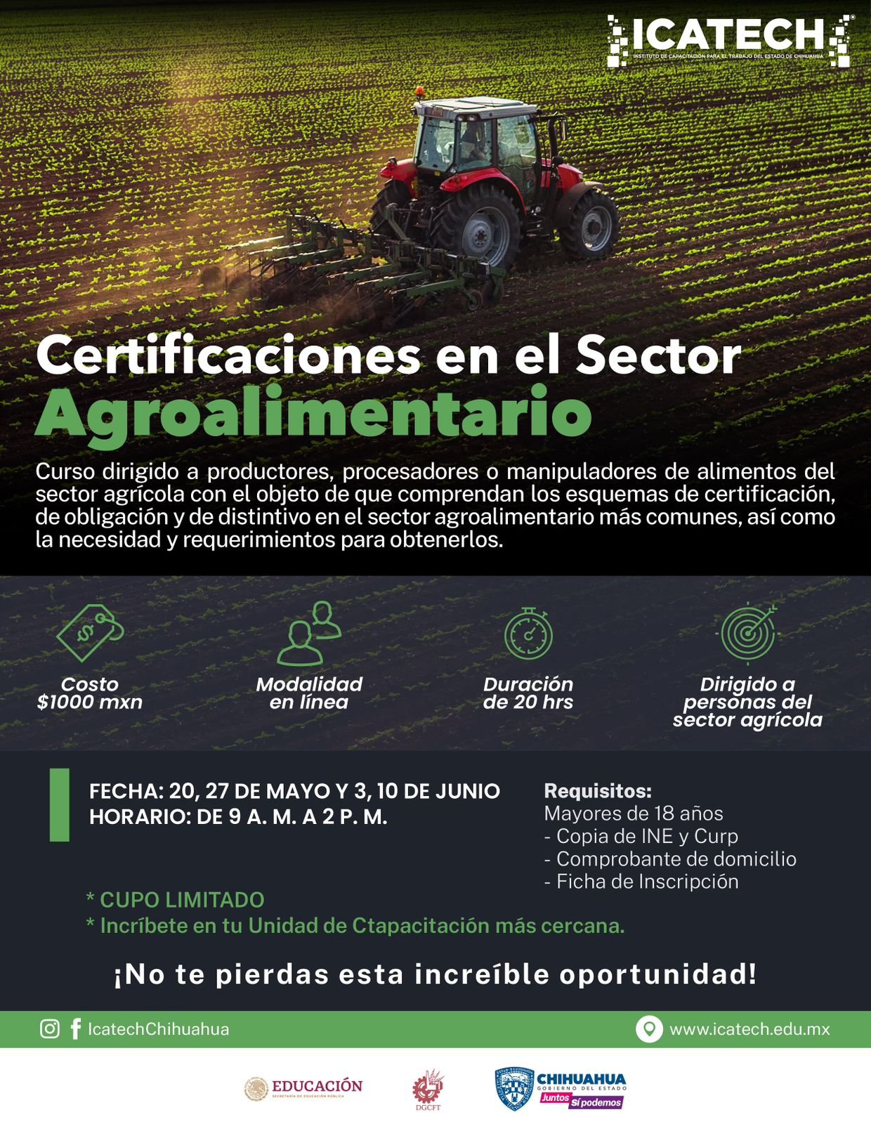 Invita ICATECH a curso de certificación en el sector Agroalimentario