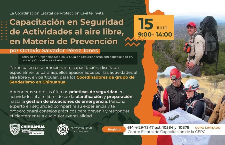 La Coordinación Estatal de Protección Civil (CEPC) indicó que continúan abiertas las inscripciones para tomar la capacitación en “Seguridad al Aire Libre en materia de Protección Civil”.