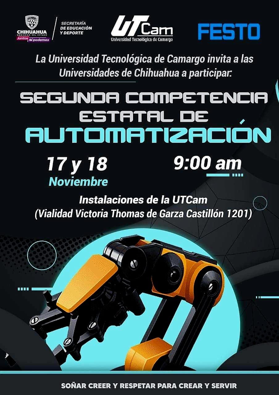 La Universidad Tecnológica de Camargo en coordinación con FESTO Neumatic, empresa líder en automatización a nivel mundial, llevarán a cabo el Segundo Concurso Estatal de Automatización, en el cual participarán instituciones de nivel superior de diversos municipios del estado.
