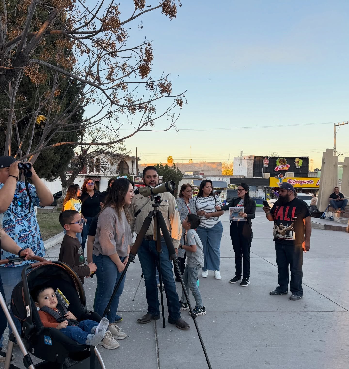 La actividad realizada la tarde de ayer convirtió el espacio público en un punto de encuentro para el conocimiento y la curiosidad, donde observaron la Luna, aves cruzando el atardecer y equipos apuntando al infinito.