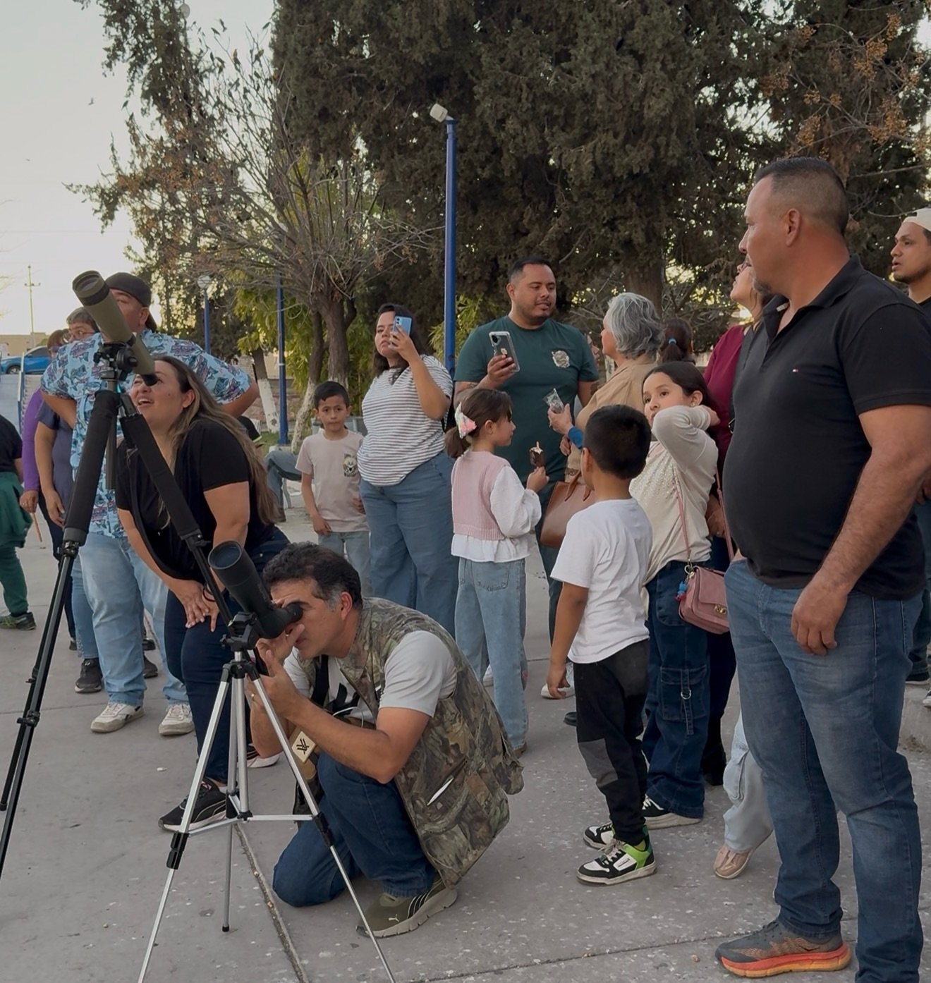 La actividad realizada la tarde de ayer convirtió el espacio público en un punto de encuentro para el conocimiento y la curiosidad, donde observaron la Luna, aves cruzando el atardecer y equipos apuntando al infinito.