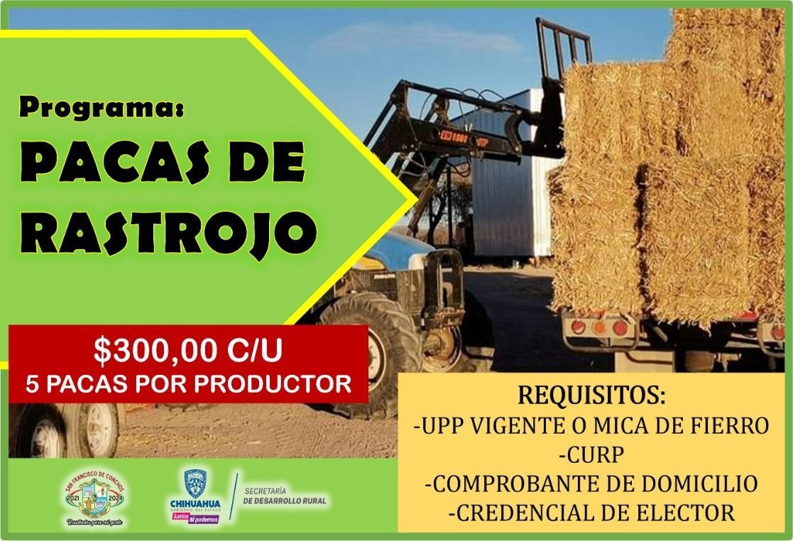 El Gobierno Municipal de San Francisco de Conchos, en coordinación con Desarrollo Rural, invitaron a aprovechar el programa de pacas de rastrojo.